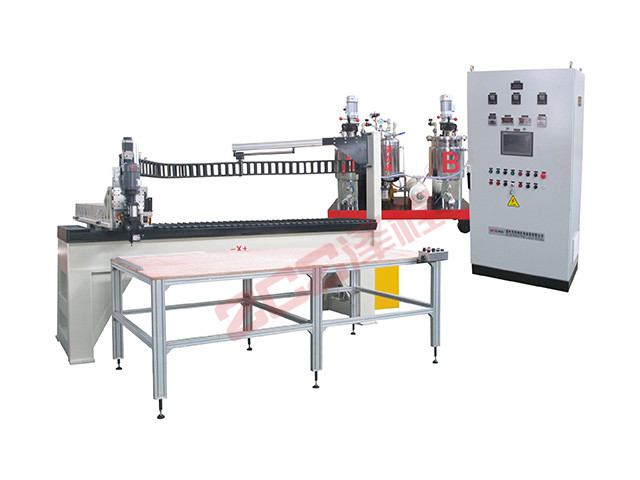 4、采用數(shù)控裝置伺服齒輪馬達驅動工作臺,工作臺上的模具按程序設定的軌跡移動,可自動澆注方形、圓形或特殊不規(guī)則形狀的密封條,具有生產(chǎn)效率高,性能可靠,操作簡便等特點。
